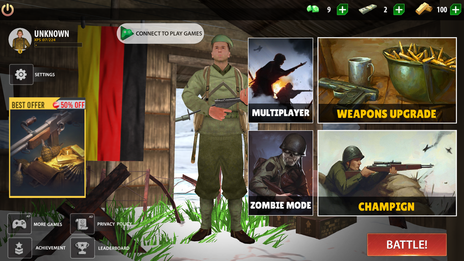 Are you ready to take down the enemies in army games or FPS Jogo de Tiro? And excited to play world war 2 reborn most thrilling and chilling gun shooting journey with battle combat. This fiery battlefield is ww2 guns game with trained world war soldiers in battlefield. Playing world war 2 sniper action with gunship nonstop fighting and shooting in combat. Ww2 reborn reminds of the undying soldier spirits and unyielding shooting sequence with war strategy of war heroes. Fight until the last man standing in gun games of german army soldiers. Be brave and take down the enemies in world war games of gun games with mission. This online offline historically popular shooting adventure or battle games has most powerful weapons for shooting enemy forces with deathmatch battles. Enjoy remarkable HD graphics and best gun with bullet simulation.